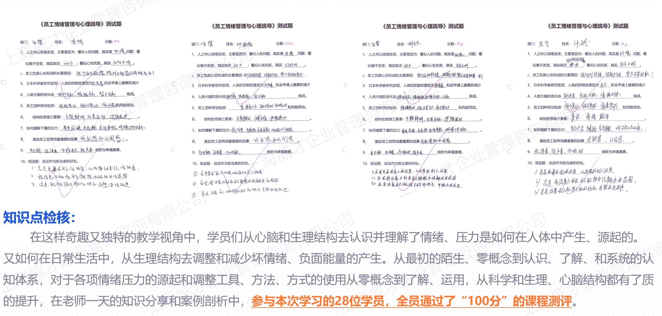 本課程專門針對以上問題而設(shè)計(jì),課程內(nèi)容以認(rèn)知心理學(xué)為理論依據(jù),從壓力管理、情緒調(diào)節(jié)兩個維度幫助現(xiàn)代職場人處理人生中各種棘手問題,并掌握多余種實(shí)用的工具及技巧,從而增加工作滿意感和人生幸福感,進(jìn)而提升組織績效。