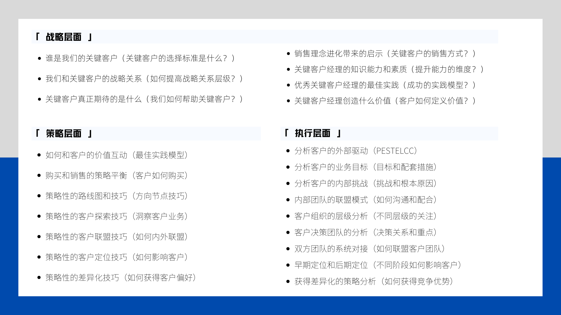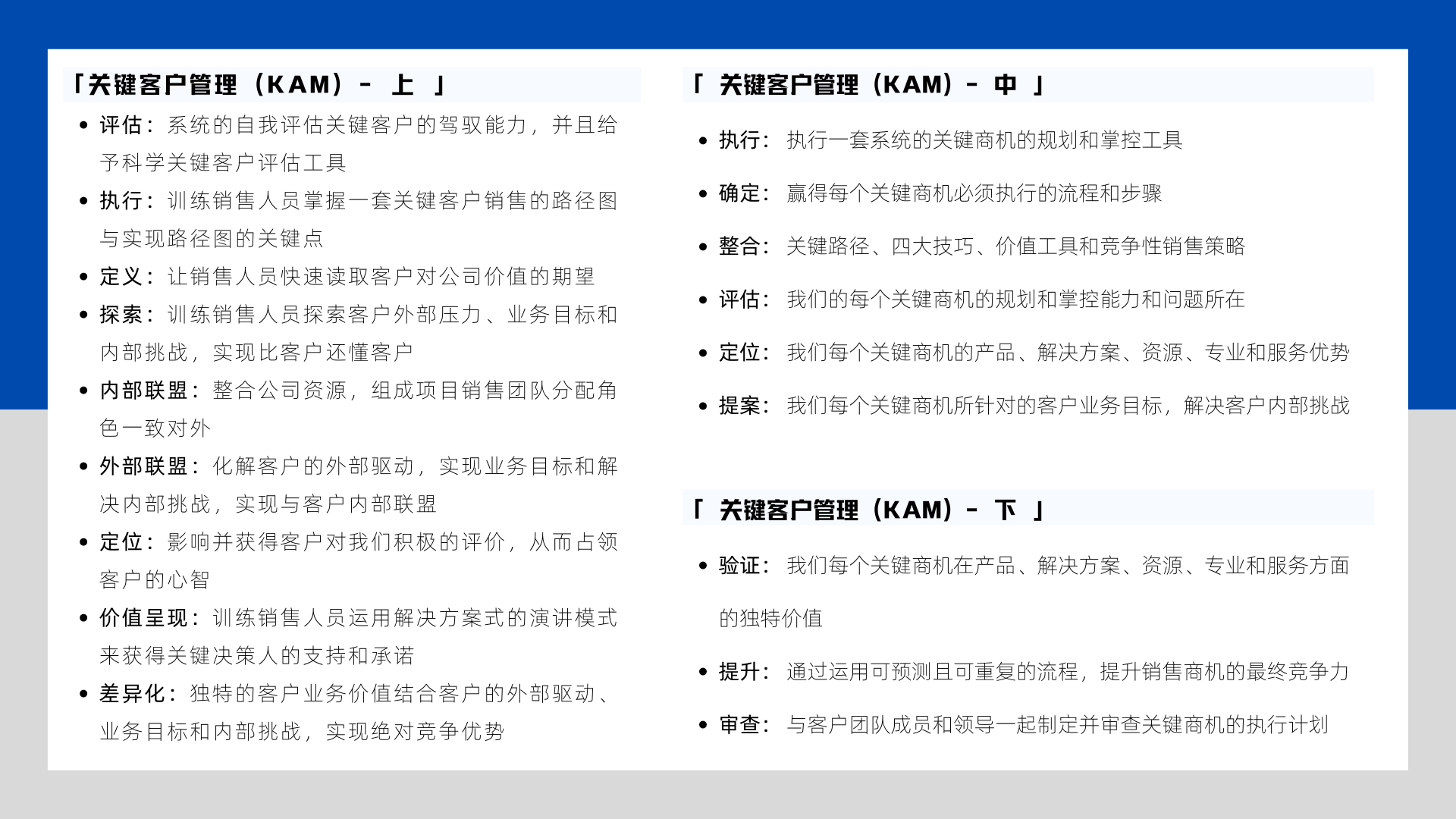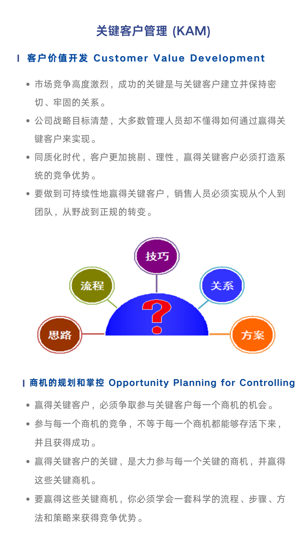 1、從全局的角度系統(tǒng)地洞察關(guān)鍵客戶管理 - 系統(tǒng)地掌握關(guān)鍵商機(jī)的規(guī)劃和掌控技能