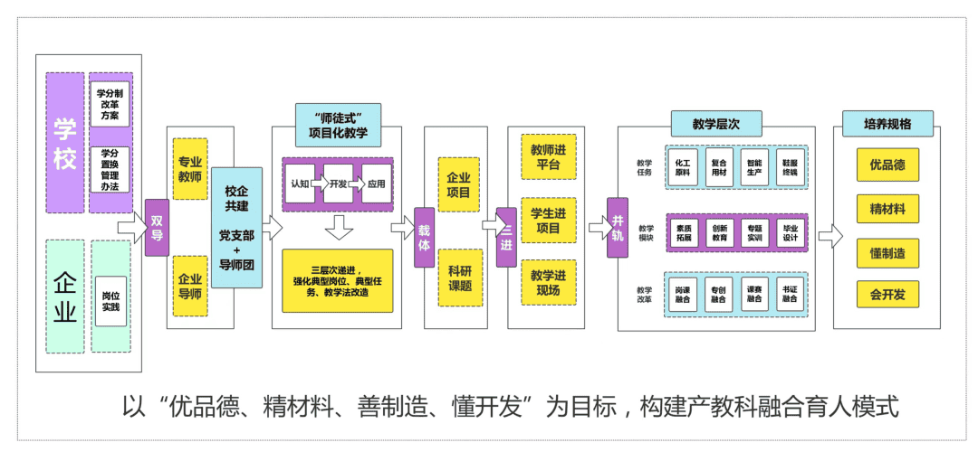 以“優(yōu)品德、精材料、善制造、懂開發(fā)”為目標,構建產教科融合育人模式